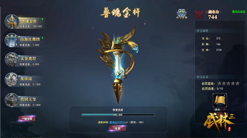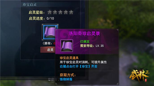 珍宝的玩法非常简单,需要集齐对应珍宝的碎片,比如:兽魂金杵碎片,击杀65-130级的怪物有一定几率掉落这种碎片,收集后点击修复,集齐400枚就可以完全获得这个珍宝。每当修复完成一点,珍宝的攻击、防御、生命属性值都会有所上升,增强角色潜力;珍宝启灵的作用除了在增加星级的时候能够提升珍宝的档次,更重要的是为珍宝带来大幅属性增长,获取方式通过装备BOSS战获得。不想错过它们的话就赶紧来吧!