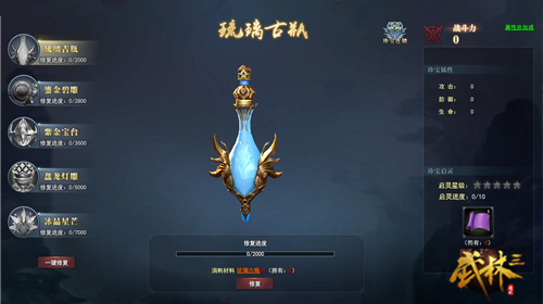 珍宝分为江南古物和洛阳奇珍,江南古物包含兽魂金杵、山海社稷图、玄金虎符、龙纹镜、传国玉玺5种;洛阳奇珍包括琉璃古瓶、鎏金碧雕、紫金宝台、盘龙灯雕、冰晶星芒5种。同是5种,但实际洛阳奇珍更为稀有,获取难度非常之高。但对于收集控来说,没有什么比“集齐”更有意思了,倘若能够将它们一一收入囊中,不仅倍有面子,而且还会收获珍宝赋予的附加属性,永久强化角色战斗力!