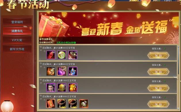 1. 春节期间消耗元宝兑换