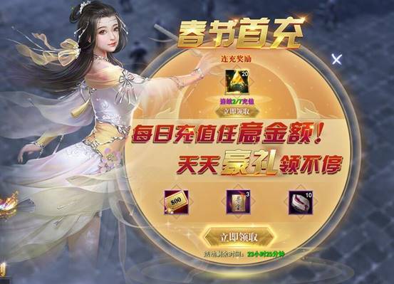 1. 春节期间参每日充值任意金额领取奖励