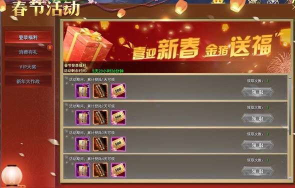 1. 春节期间登陆即可领取