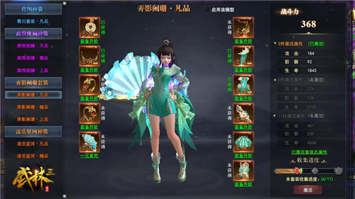 如果你刚收集完一套青川神装就乐得逍遥,只能说你还没玩到位,仅神装收集里就有青川神装、离恨斑斓神装、弄影阑珊套装以及凌岳星河神装4大系列,有凡品、精品和上品之分,更何况还有至宝收集和绝世神装其他两大项神装收集在等着你,没办法,只能继续撸装备咯,毕竟要成为江湖上最靓的仔还是很不容易哒~