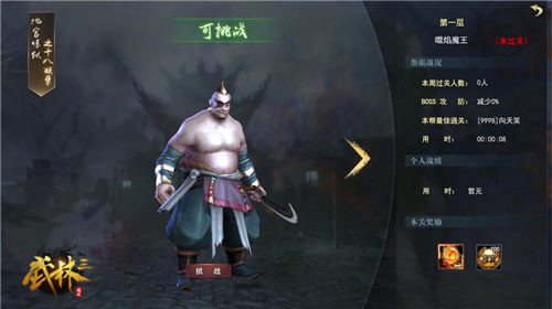 铜人试炼是帮派活动的热门玩法之一,帮派成员可以任意时段参与十八铜人BOSS挑战。找到“铜人试炼”点击“前往参加”,进入活动主页面,玩家会率先看到第一层的BOSS——地宫炼狱之十八妖孽中的噬焰魔王。彪悍的外形、凶恶的眼神,腰间还配着锋利的镰刀,凶神恶煞的相貌不禁令人咂舌。无需惧怕,当你击败他们那一刻开始,除了能感受到你飞速提升的实力,还可以收获海量奖励,还有什么比这些更值得的呢!