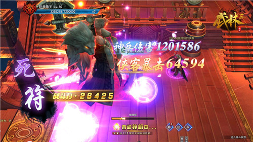 进入挑战地图稍作休息后就要直击BOSS了。和其他玩法比较相似,首先玩家可以携带侠客入场,可以分散BOSS的注意力;其次,有场景涉限,玩家需要在规定时间内击败BOSS,右侧标有伤害排行榜,伤害越高的人有一定几率获得优质奖励。道理大家都懂,只要踏踏实实击败BOSS就大功告成啦!