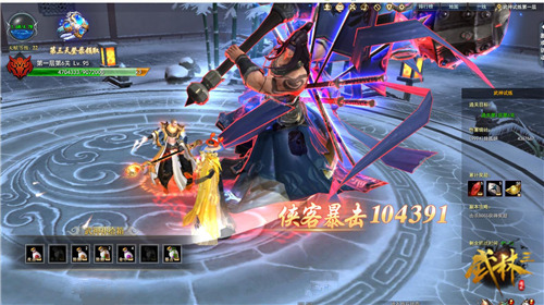在古代神话世界中,武神是跟战争有关的神祇,能保佑战争得胜,但在360《武林三》里要是提到“武神”这个词,恐怕是个人都会敬畏你三分,不提别的,就说说这【武神试炼】,就不是凡夫俗子能够承受得了的。达到2转20级以上的高手即可参与【武神试炼】,每天10:00-10:30、19:00-19:30可进行武神试炼匹配,每天只能挑战一次,通关挑战可获得丰富奖励。有两条通道可直达【武神试炼】的入口:1、组队副本,点击第三项即可成功进入主页;2、活动大厅,基本上在靠下的位置才能找到。进入主战场会有一段倒计时,结束后不拖泥带水,直接与BOSS的战斗。