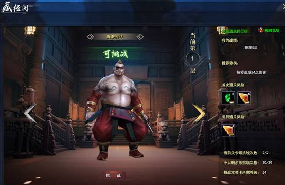 千机楼每日共可挑战20次,每个关卡只可挑战1次,只可单人进入。