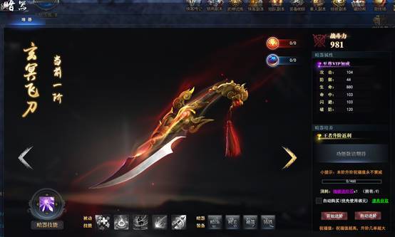 暗器可以给玩家游戏角色增加属性和技能,进阶后可以大幅提升属性并获得全新外观。