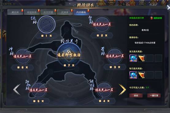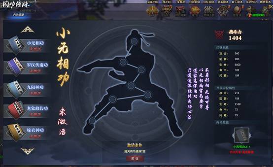 通关内功修炼副本,即可获得相应的绝世内功,习得新的内功技能,并且获得一定的属性加成